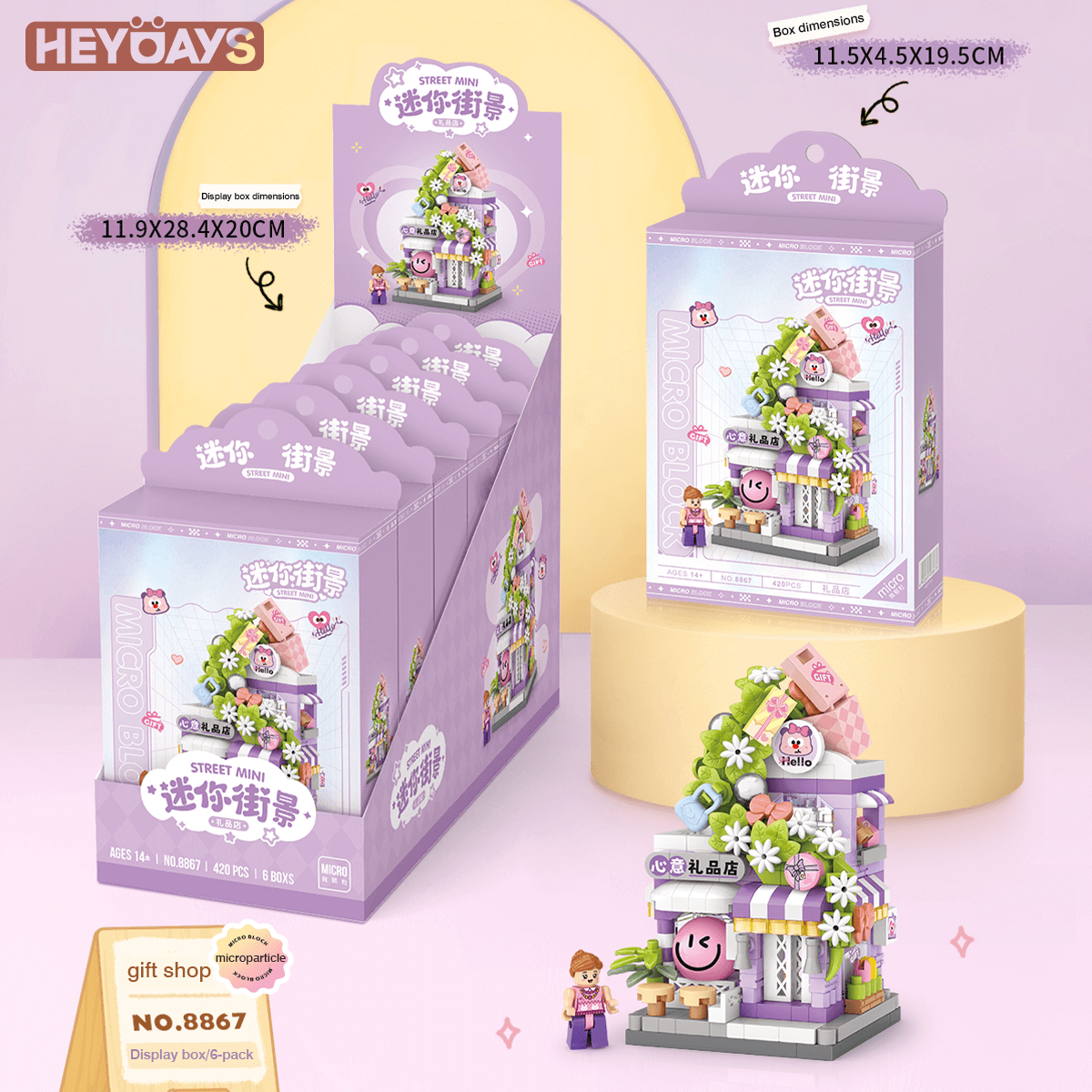 Create your own pastel shopping street with the LOZ Micro Block Street Shop Series. Each model captures a different storefront—Gift Shop (8867), Snack Shop (8868), Stationery Store (8869), Select Shop (8870)—using high-precision micro bricks for incredible detail in a compact footprint. From curved awnings and signage to tiny planters and counters, these builds are a satisfying challenge for teens and adult builders