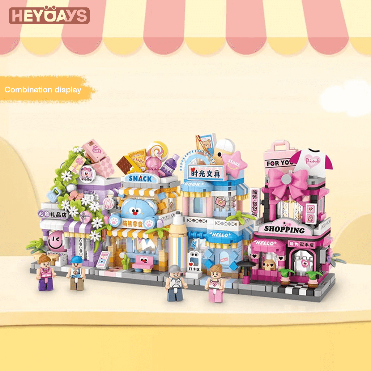 Charming street-view dioramas – Build a pastel mini city street with 4 styles: Gift Shop / Snack Shop / Stationery Store / Select Shop. Detailed façades, signage and interior touches create premium display décor for shelf or desk.