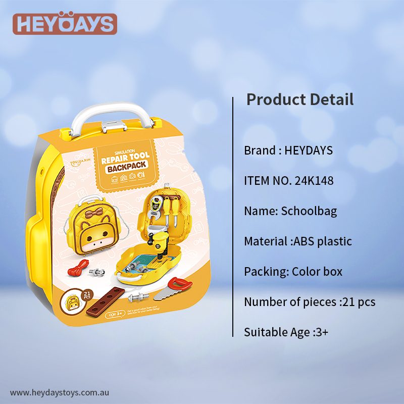 Description: Unleash your child’s inner engineer with this 21 PCS Kids Tool Set! Packed with realistic, functional tools and a cute cattle-themed backpack, this set is designed to inspire creativity and hands-on learning. Whether your little one is building, fixing, or creating, this set has all the essential tools for pretend play. The tools are safe, durable, and perfectly sized for small hands, making them the ideal introduction to the world of construction.